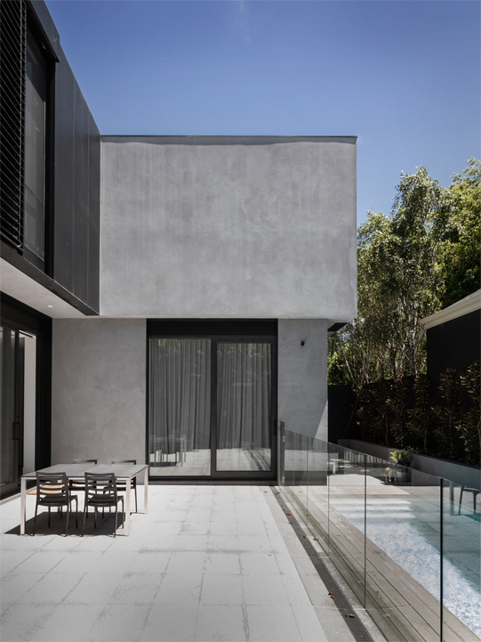 Perfectly meeting the brief, the luxurious home has two north-facing planted terraces around which the living areas are positioned. Custom oversized double-glazed sliding doors create a seamless transition between the indoor and outdoor spaces. With basement parking, a cinema, wine cellar, lift and pool, the house is an inner-urban sanctuary. Extensive custom joinery features throughout the home to provide a long-lasting and highly functional result. For welcoming visual appeal, an elegant interior colour palette with natural stone and timber finishes was selected.