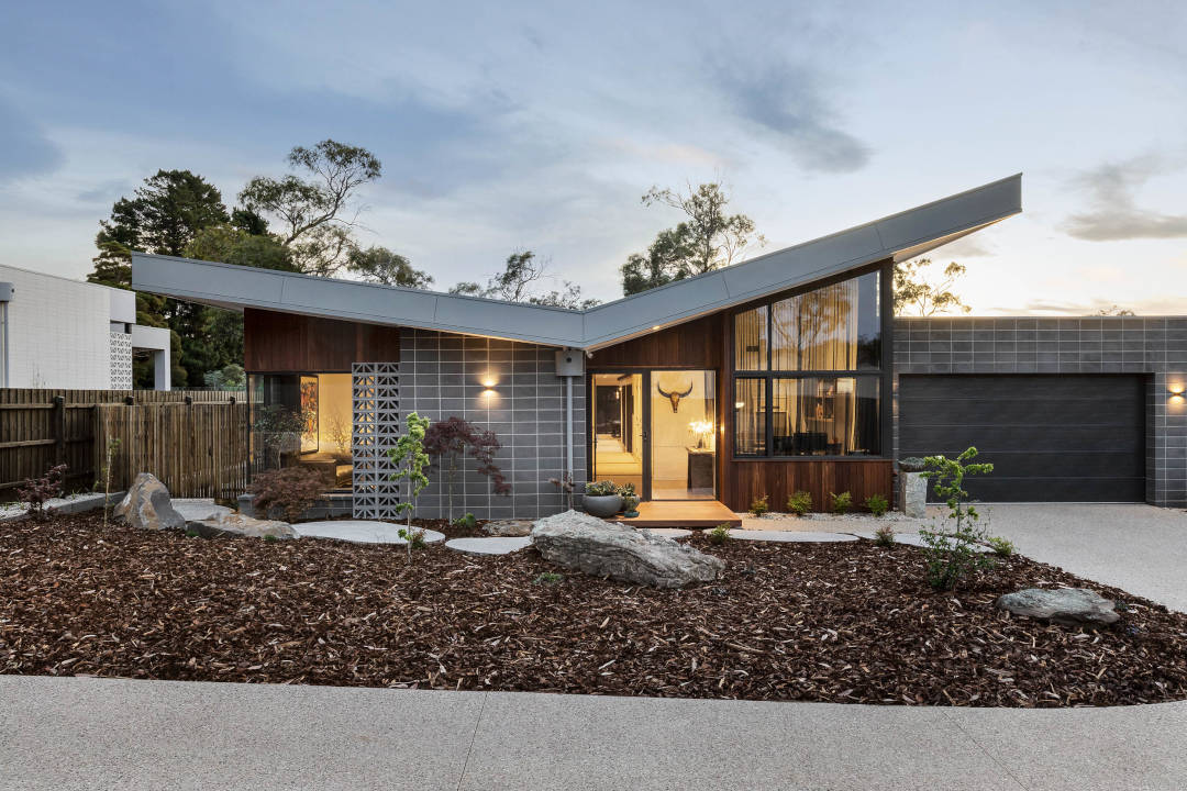 This striking home evokes flight through its butterfly roof and striking facade.