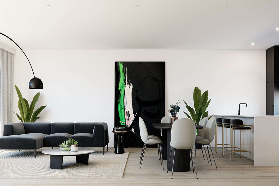 With an excellent blend of materials used for the exterior, this house has been built with a precise designer’s eye. The living, kitchen and dining area is pleasantly spaced, with plenty of gentle natural light streaming in from the wall-to-wall windows. Sleek and minimal, the bathroom aims for comfort and simplicity with a touch of contemporary style.