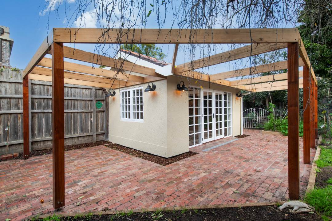 The team at DPV Construction added a custom timber pergola, adding to the timeless charm the space exudes.