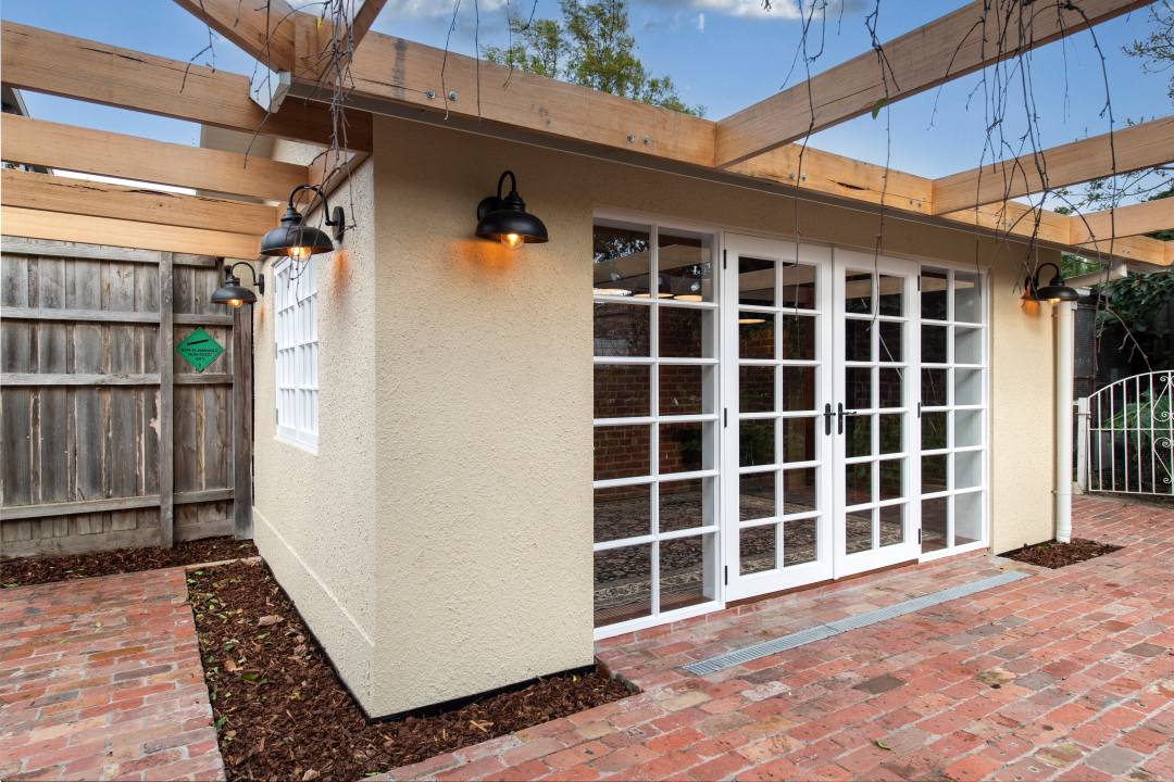 This bespoke renovation transformed the outbuilding into a sun-filled studio.