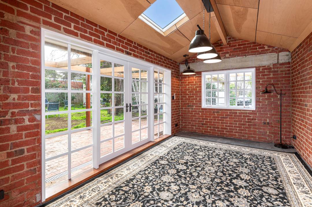 Rich with character, the updated studio features a skylight, double French doors and the restoration of the original warm-toned, striking brickwork.