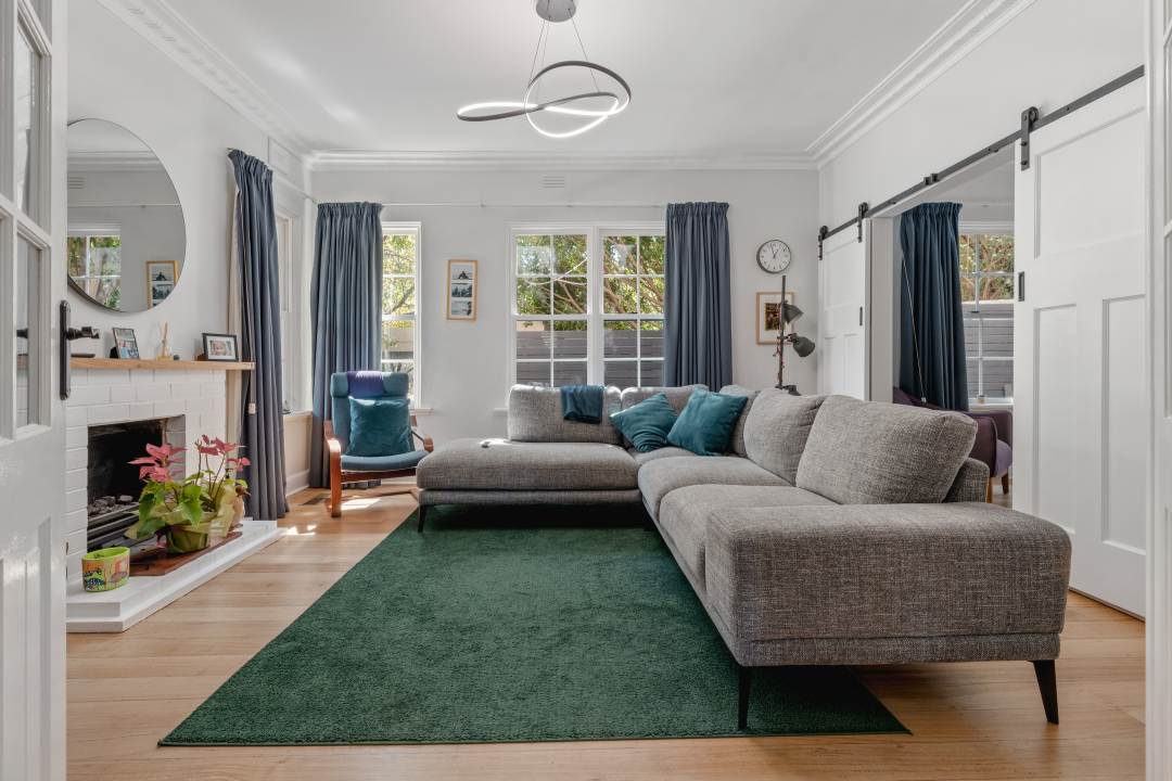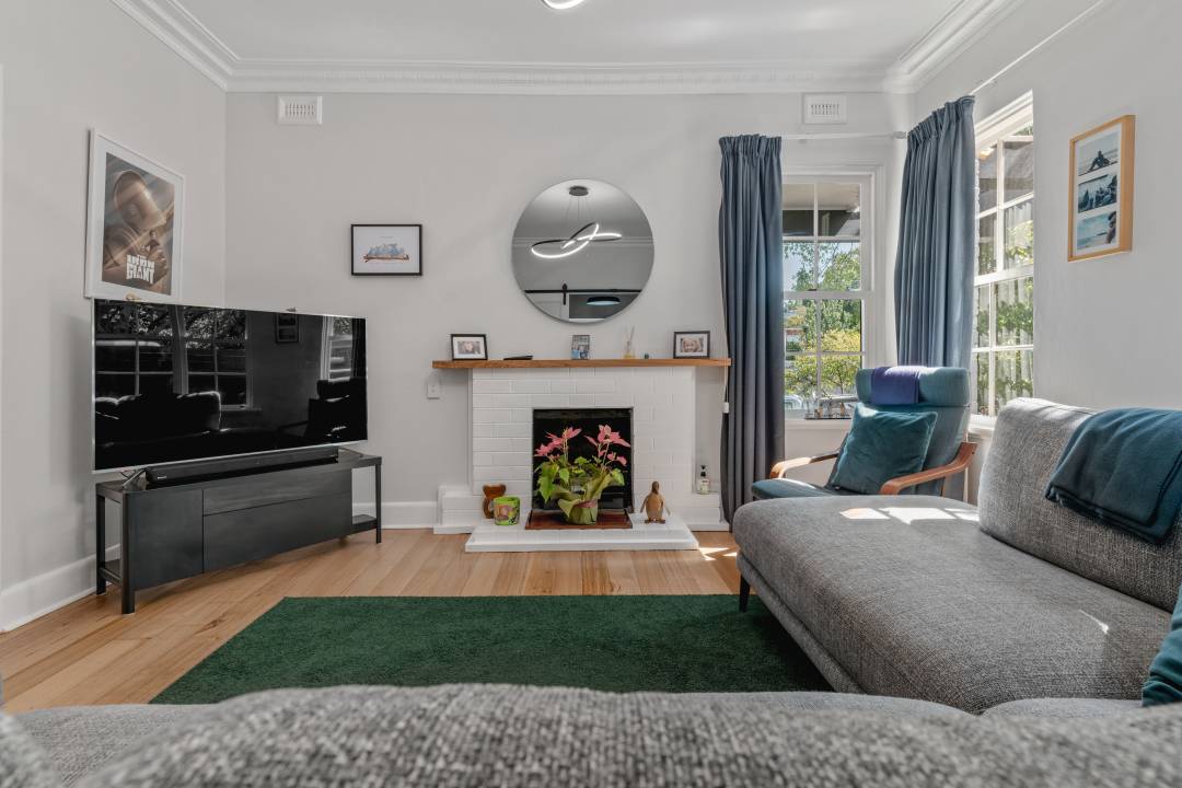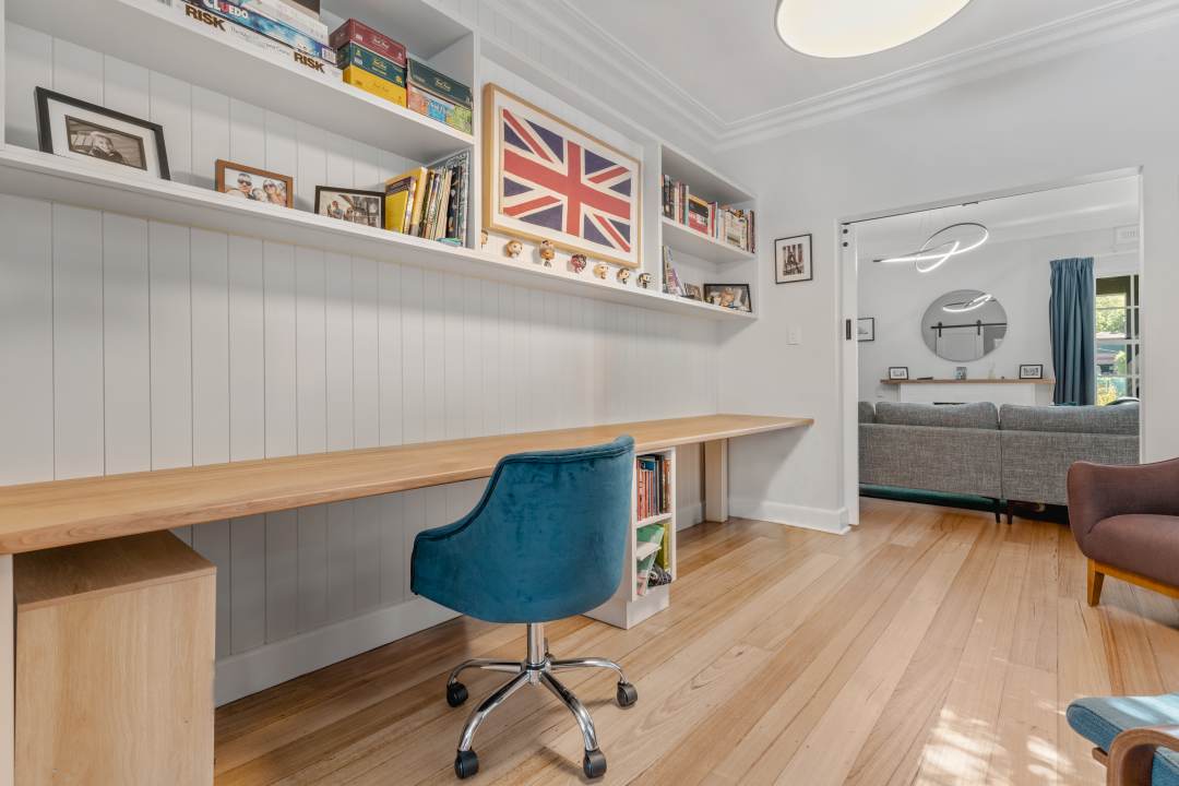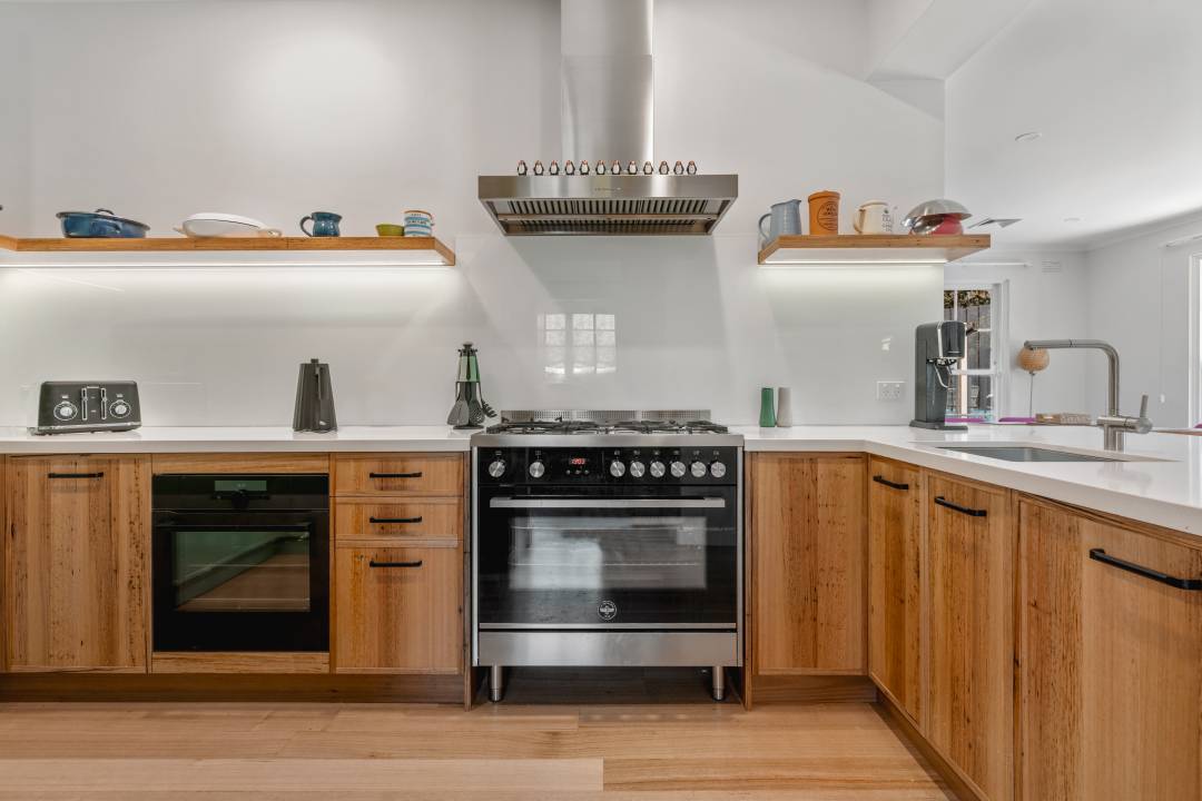 Pale green cabinetry, warm timber accents and clever design elements elevate the space while honouring its originality.