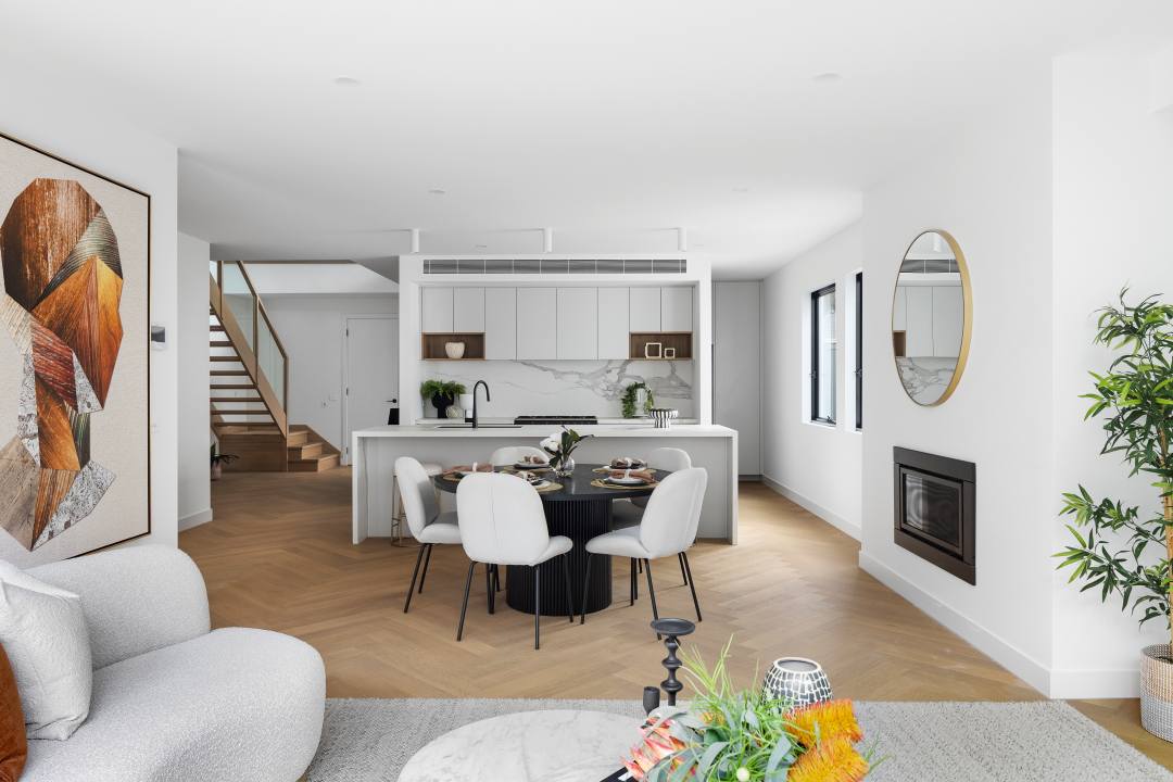 This recent project from Drake Design exemplifies high-end townhouse living, designed to optimise its site while delivering a sophisticated, modern aesthetic. The brief called for house-sized, medium-density homes that not only suit current market expectations but also meet the evolving planning framework introduced by the state government. With large footprints and a layout that feels more akin to a home than a townhouse, the design takes full advantage of the recent VC288 amendments.
