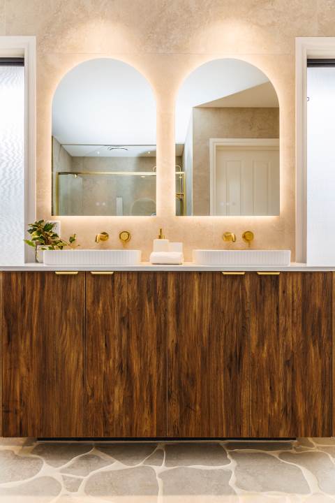 Ellari Homes’ latest project is a testament to what can be achieved when a builder and client work collaboratively to create a warm, refined and personalised home. Although the project began under difficult circumstances – after the original builder entered liquidation – the clients turned to Ellari Homes to revive their incomplete two-storey residence. Seeking a company they could trust for transparency, guidance and stability, the clients found a saving grace in Ellari Homes, who conducted a full review of existing works and established a structured plan to confidently complete the build. Working closely with the owners, the team provided support at every step, helping them make informed decisions and ensuring each choice aligned with their needs and lifestyle. Central to the home is a naturally lit kitchen that feels bright, effortless and inspiring, enhanced by a functional servery window that seamlessly connects the space to the alfresco. Unique tiling choices deliver visual cohesion throughout, while bespoke features – including a custom wine room under the staircase and striking arches on the façade and interior – add character. The result is pure excellence – a tailored, cohesive home that restored the clients’ trust and momentum through consistent communication, clear expectations and genuine transparency. ​