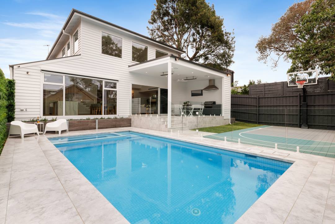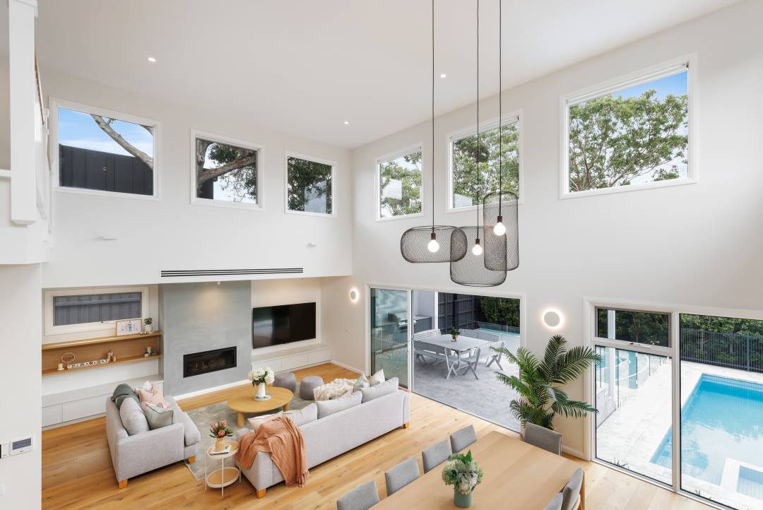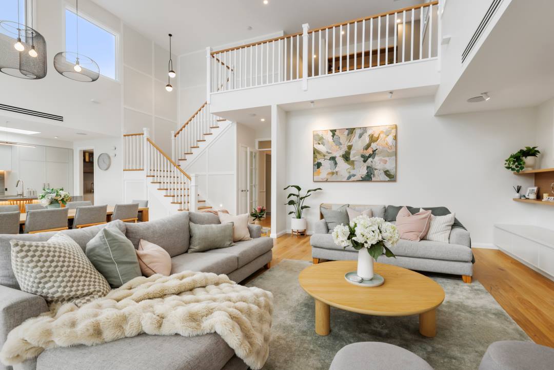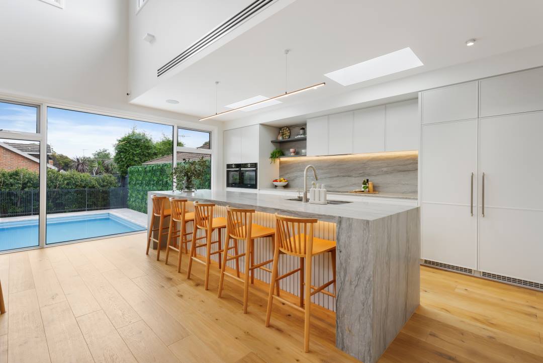 This latest project from Norton Builders is the epitome of a stunning family home built for lively entertainment with hints of classic sophistication. With its expansive design featuring a void at the rear of the house and masterful touches of light timber and grey accents, this project is centred on the idea of quiet luxury, while still accommodating for the increased need for functionality within a family home. The materials used set this project apart, with natural stone, timber features, profiled two pack joinery, and a weatherboard façade to accentuate the classic feel of the home.